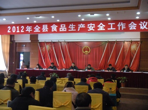 會議由質監局食品科張宏彬科長主持,會上分管局長鄭延江同志講話,總結了去年2011年全縣食品生產企業監管情況總結,提出了2012年監管工作重點;監督科于子群科長通報了全縣食品生產企業省監督抽查情況;稽查大隊朱軍大隊長通報了去年食品企業的查處情況;張宏彬科長通報了近期的電子動態監管情況。197家食品及食品相關產品生產加工企業負責人簽訂質量安全承諾書。市局徐冀輝副處長在會議上作重要講話,重點指出企業要將被查處的企業作為前車之鑒,要將日常的工作落在實處,認真落實企業質量安全主體責任,切實保障好食品的質量安全。